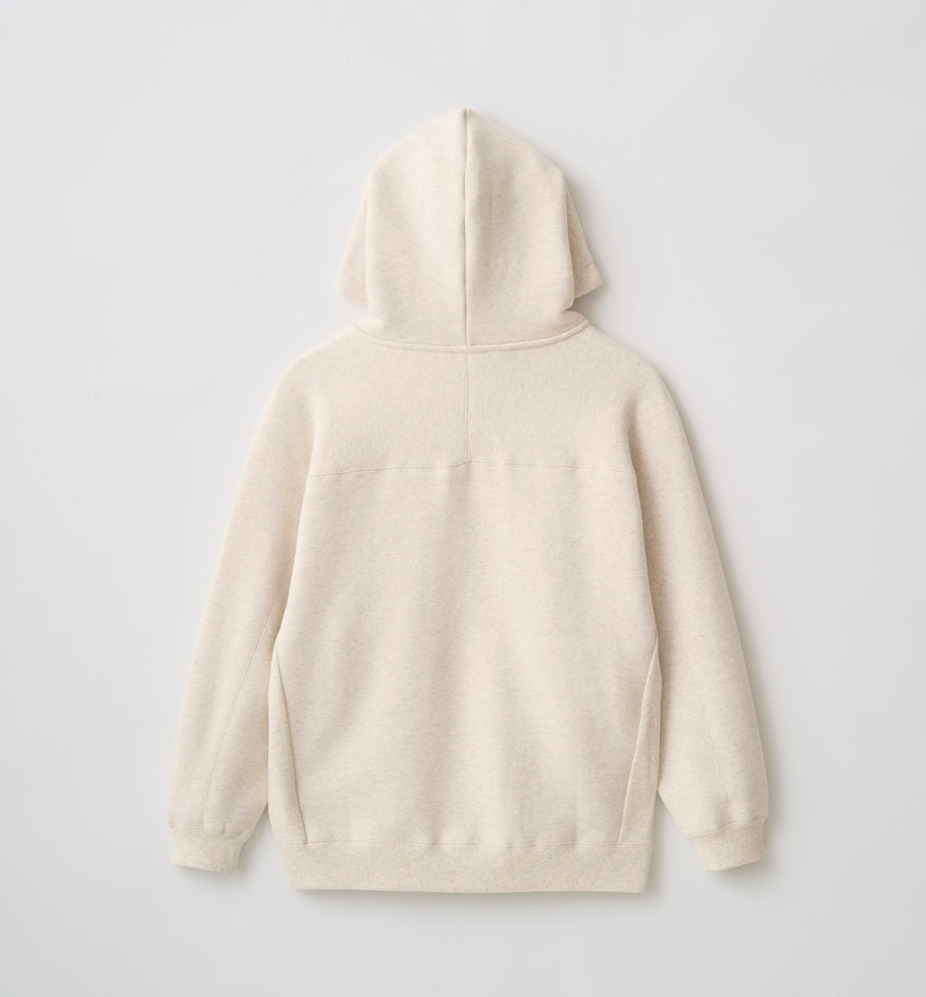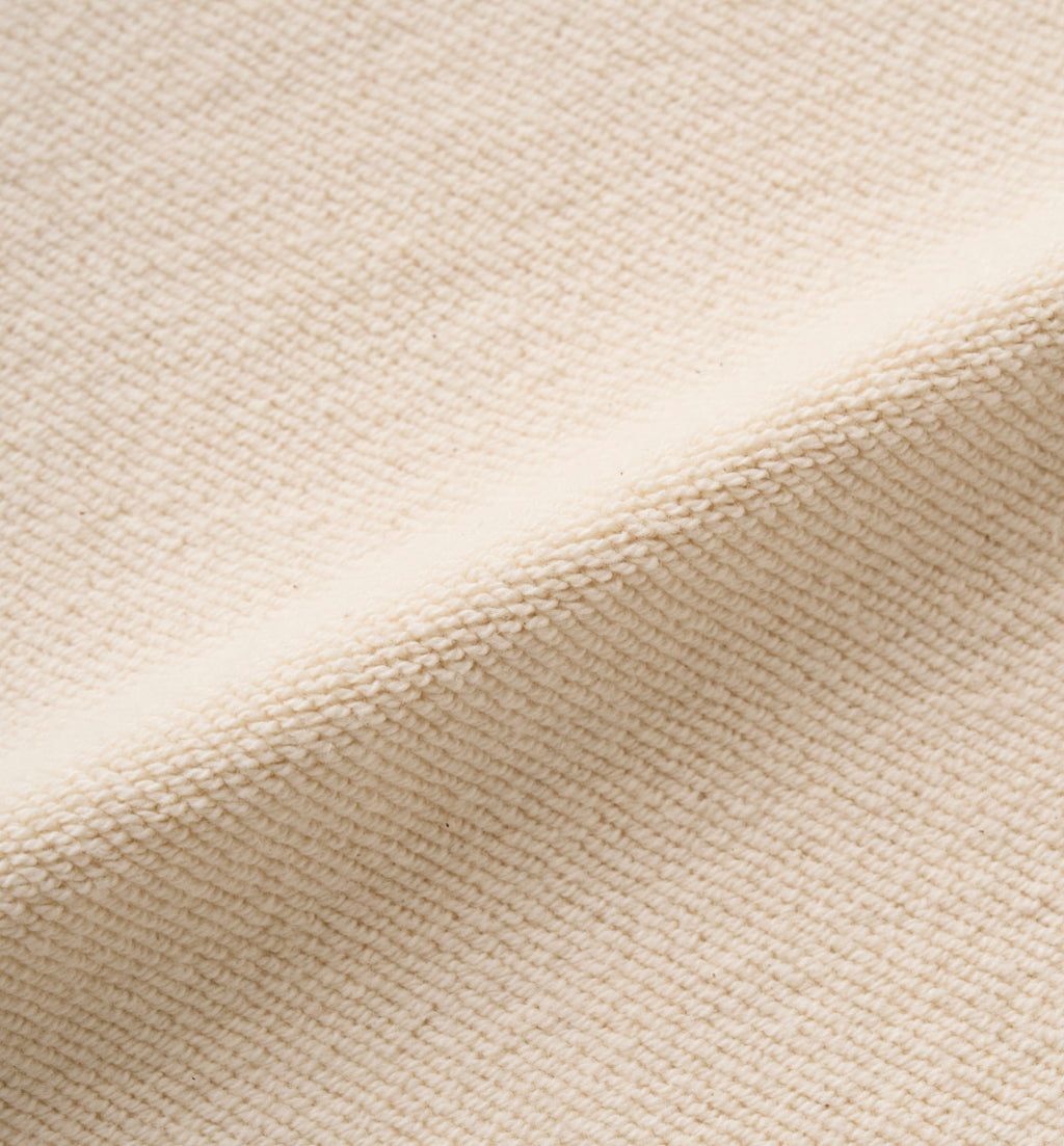 ジャガード織り機でゆっくりと時間をかけ、丁寧に編み立てた裏毛素材。太番手の綿糸を使用し、膨らみのある組織に仕上げました。