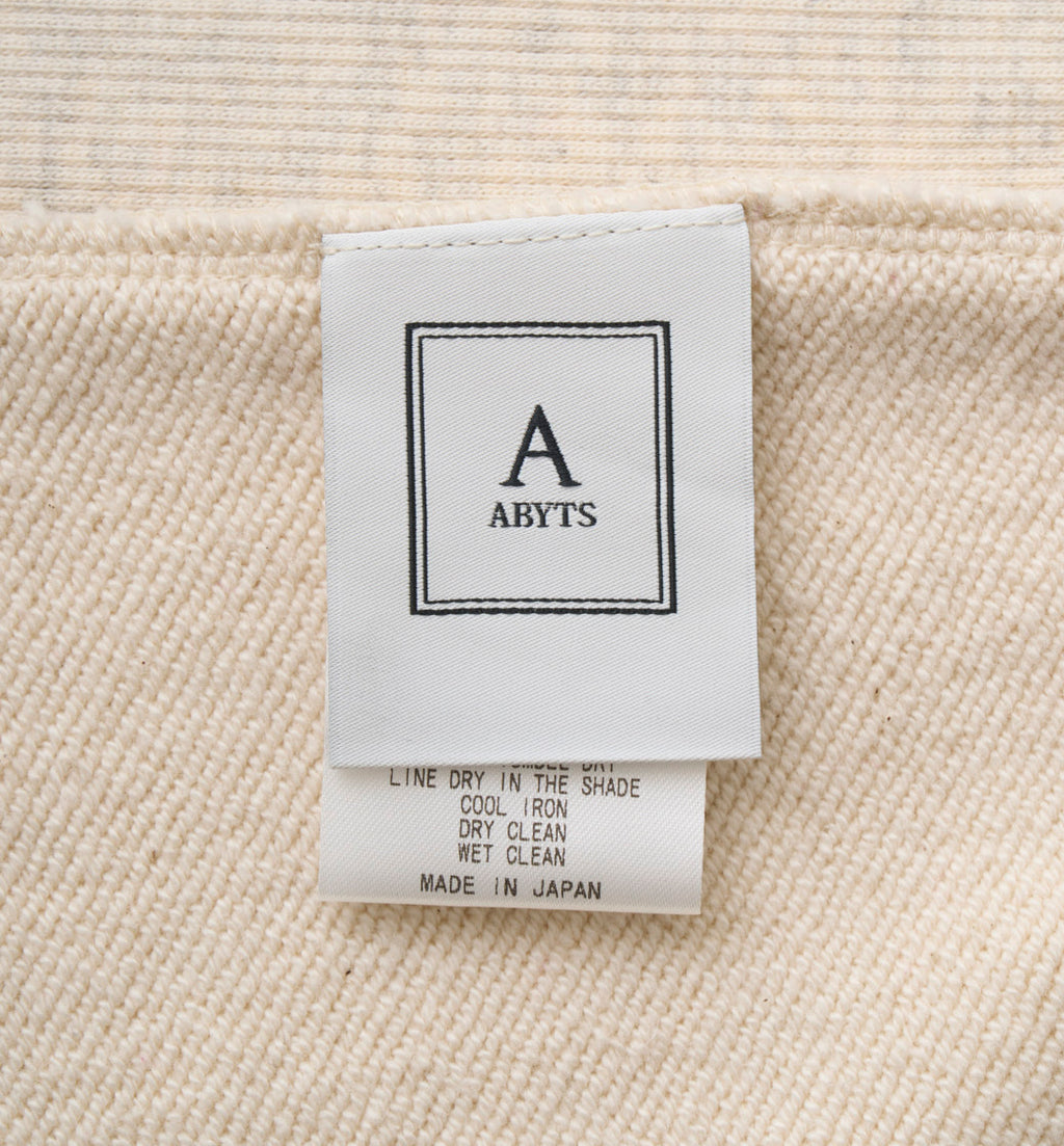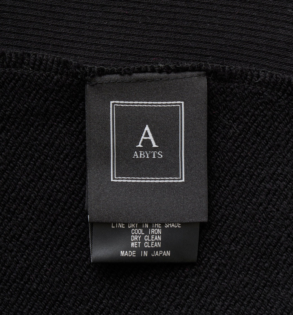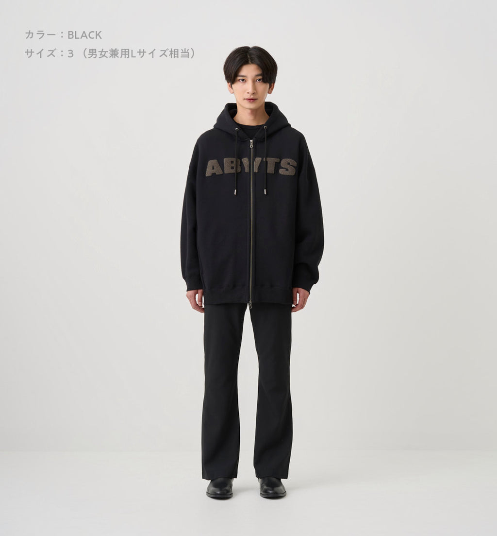 サガラ刺繍で制作したABYTSロゴワッペンを、胸元に贅沢に配置。