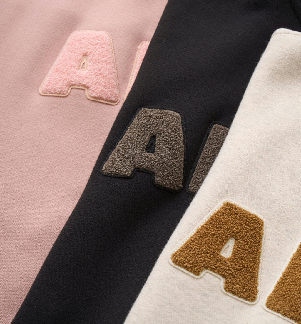 2年ぶりにAとしてリリースするジップフーディ。カラーはオートミール、ピンク、ブラックの3色展開。